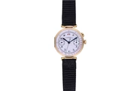 Le Saleve F.M. Sorrentino Roma, cronografo monopulsante in oro, anni '30-'40, movimento a carica manuale, rif fondello 31266, cinturino pelle fibbia metallo commerciali, 40 mm, quadrante parte restaurata, ossidazioni, difetti dovuti all'epoca del bene, si consiglia assistenza tecnica - Grammi 51,20