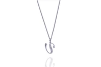 Collana con ciondolo impreziosito da diamanti, realizzati in oro bianco 750, diamanti taglio brillante, ct 0,10 totali circa, lunghezza 45,5 cm, imperfezioni - Grammi 2,30