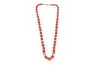 Collana di coralli con chiusura e parti in oro giallo 750, coralli a barilotto a gradazione da 6 a 13 mm, lunghezza 50 cm, imperfezioni - Grammi 62,30