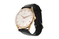 Zenith Stellina, orologio in oro, anni '60, movimento manuale calibro 40, vetro plastica, quadrante avorio, piccoli secondi al 6, cinturino commerciale in pelle, diametro 38 mm, imperfezioni, lievi ammaccature, si consiglia assistenza tecnica - Grammi 41,60