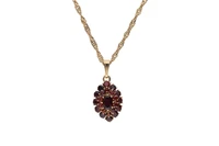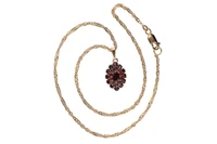 Collana a torchon e pendente di forma ovale con pave' di granati, in oro giallo 750, imperfezioni, collana lunghezza cm 46, dim pendente cm 3x1,5 - Grammi 11,10