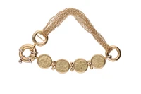 Bracciale realizzato con medaglie e catenelle a maglia forzatina, in oro giallo 750, imperfezioni, lunghezza cm 19 ca - Grammi 25,60