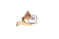 Spilletta a decoro vegetale, realizzata in oro giallo 750 con pietra azzurra, imperfezioni, dim cm 3,6x2,6 - Grammi 4,50