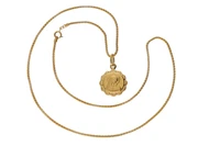 Collana e medaglia con immagine sacra, in oro giallo 750, imperfezioni, lunghezza cm 40 - Grammi 2,90