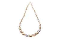 Collier semirigido realizzato nei tre colori dell'oro 750, con finitura lucida e satinata, imperfezioni, diametro cm 15 - Grammi 26,10