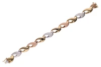 Bracciale a maglie ovali, nei tre colori dell'oro 750, parti lucide e parti satinate, imperfezioni, lunghezza cm 19,5 - Grammi 14,90