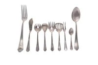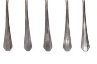 Lotto composto da 12 cucchiai, 22 forchette, 12 cucchiai e 8 forchette frutta, 4 pezzi antipasto, 6 cucchiaini, mestolo, 6 coltelli e 5 forchettine ostriche, argento 800 ammaccato - 23 coltelli argento 800 e metallo parti rotte e mancanti - Grammi 3.865,00