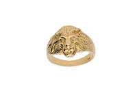 Anello in oro giallo 750, raffigurante testa di leone, imperfezioni, misura 26 - Grammi 10,80