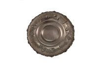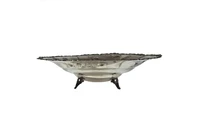 Centrotavola in argento 800 con elementi decorativi vegetali, piedini a traforo di cui uno dissaldato, presenza di ammaccature, ossidazioni, graffi, diametro cm 27 h cm 10 - Grammi 305,00