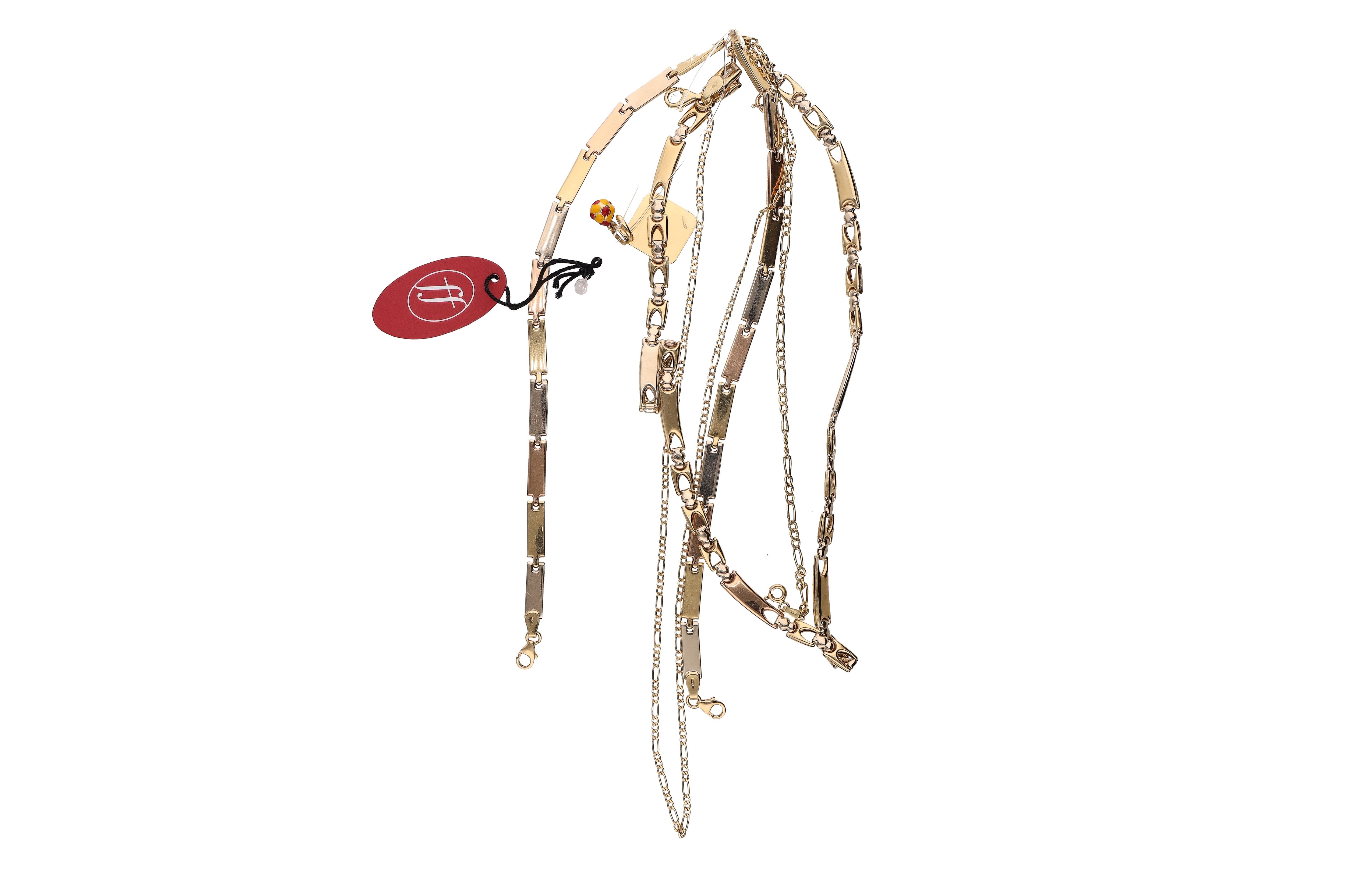 3 bracciali, 2 ciondoli, 2 collane in oro, parte smaltata, difetti (#of24,8g) - Grammi 34,30