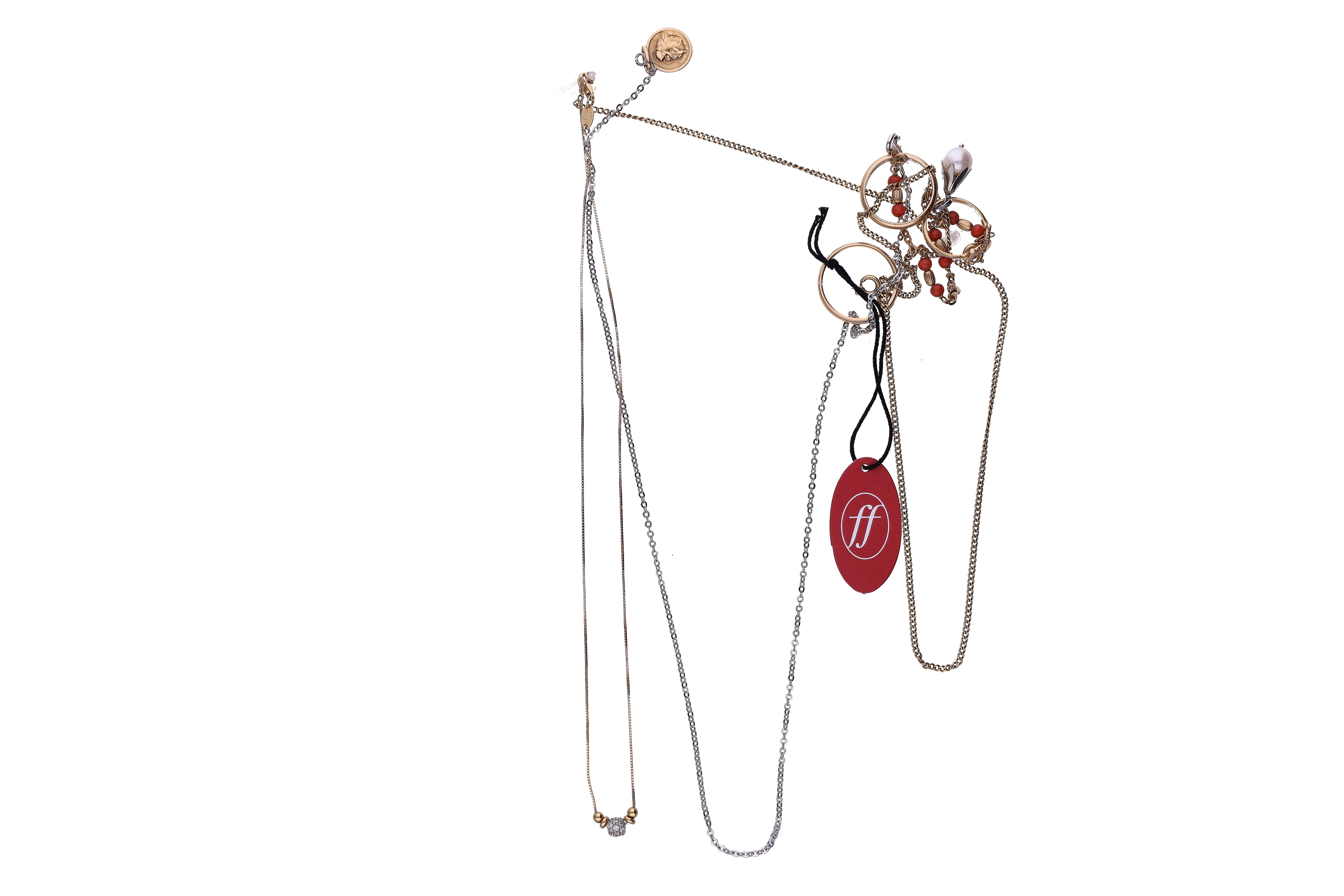 2 Anelli, 2 collane, ciondolo oro, parti incise 20,7g - Collana, anello, bracciale, ciondolo oro, smalto, perla coltivata, coralli, pietre difetti 9,3g (#of20,8 - Grammi 30,00