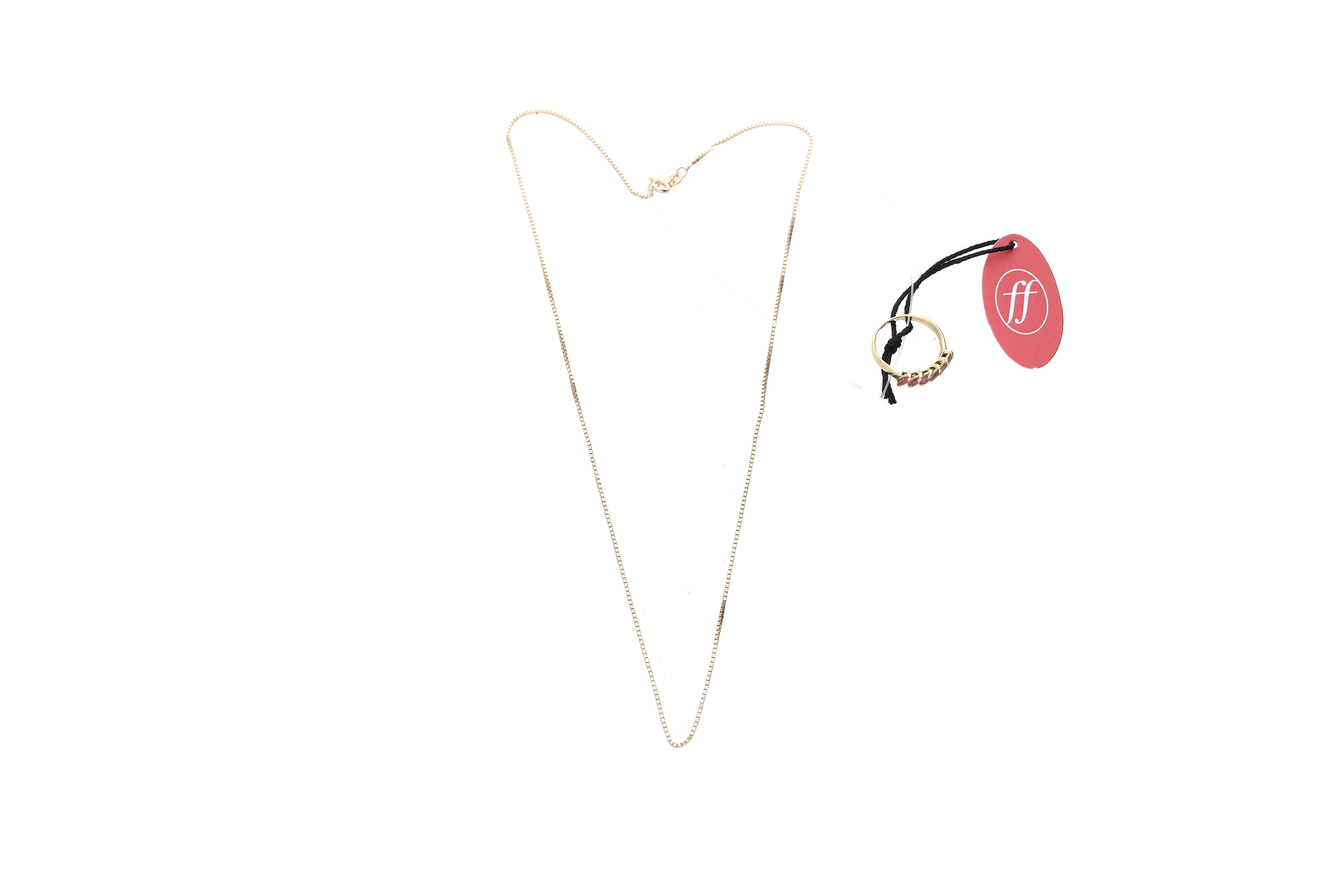 Collana in oro titolo inferiore 2,8g - anello in oro, pietre 1,9g; parti ammaccate, difetti (#of2,8g) - Grammi 4,70