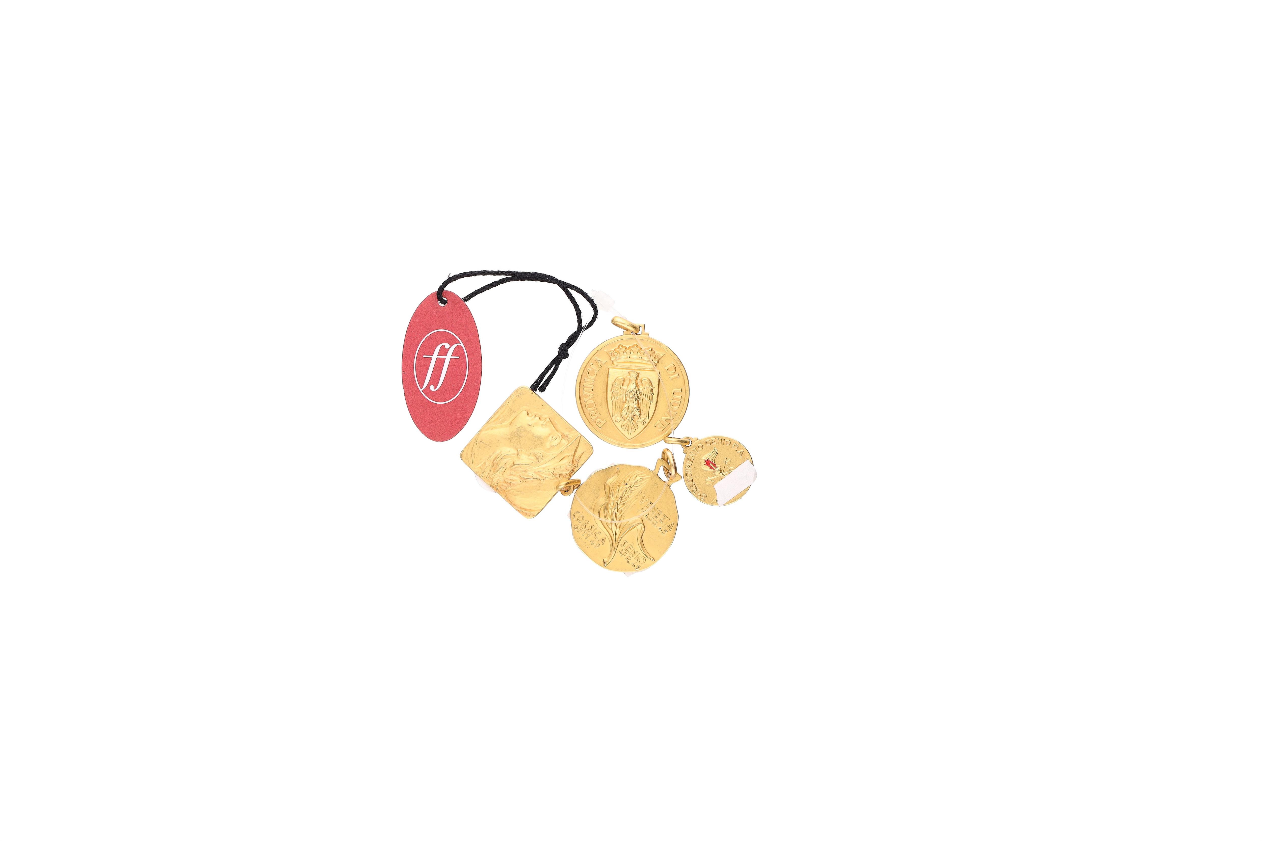 4 Ciondoli, in oro, smalto, parti incise, difetti, (#of31,9g) - Grammi 43,70