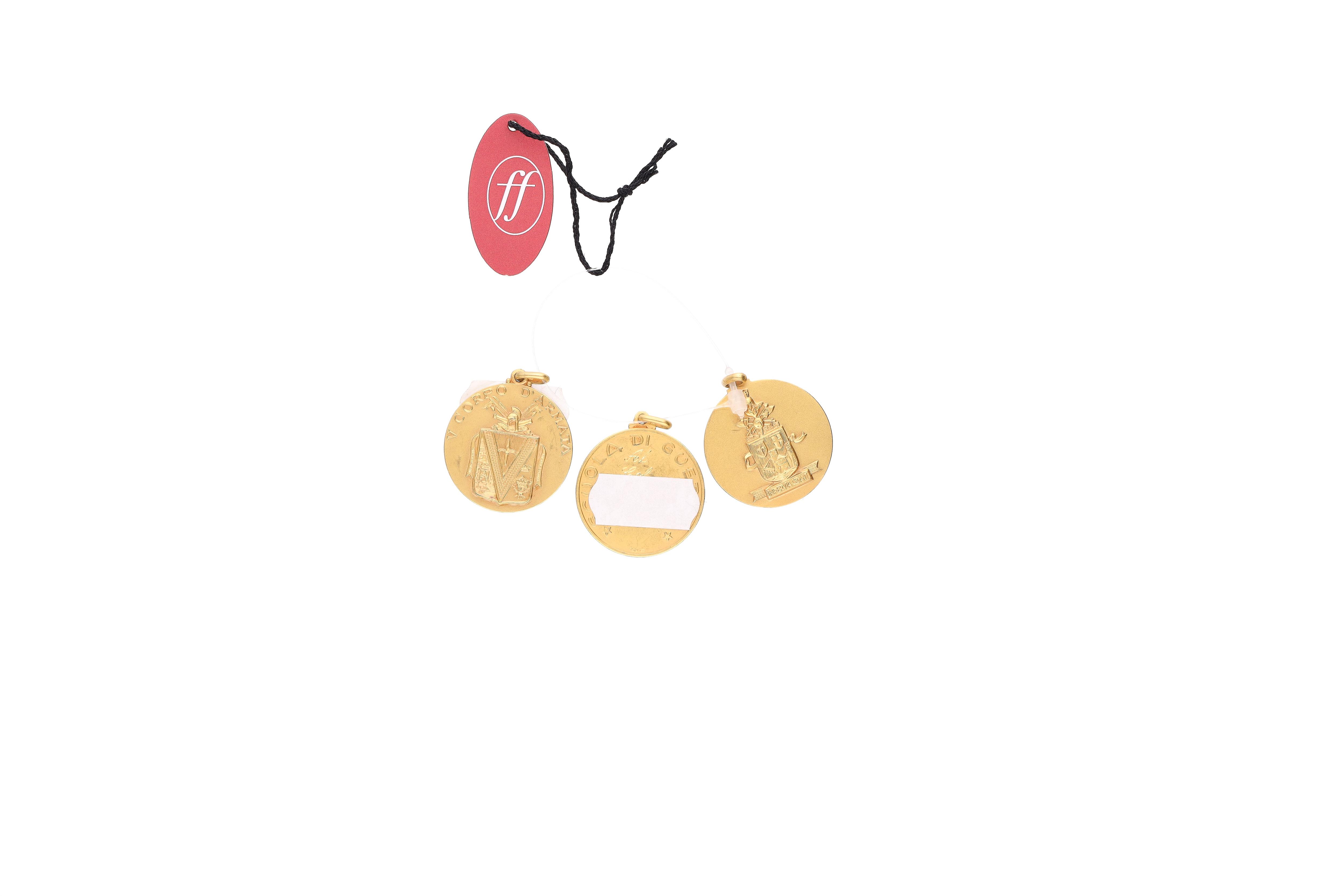 3 Ciondoli, in oro, smalto, parti incise, difetti, (#of30,8g) - Grammi 42,40