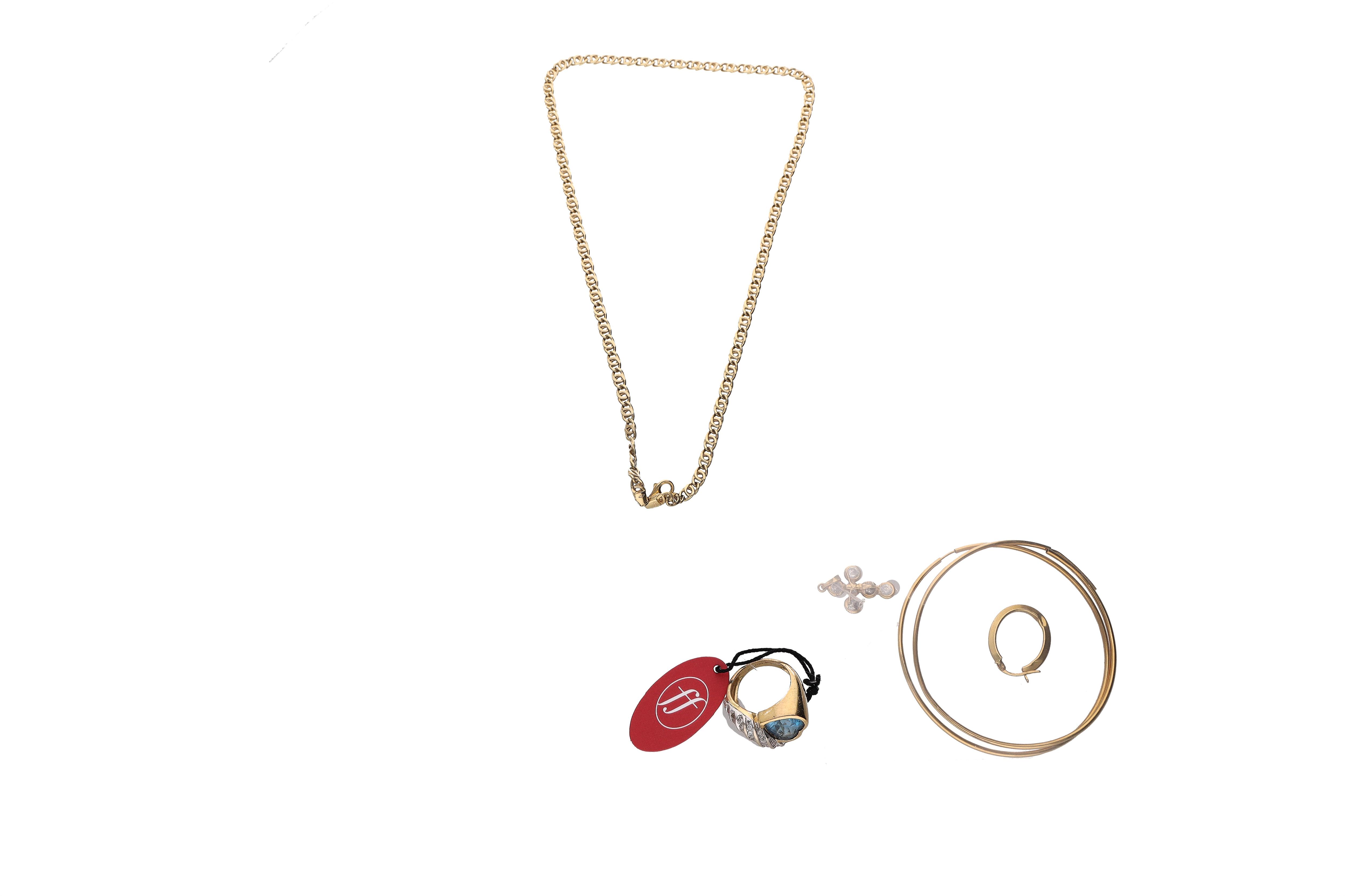 1 collana, 3 orecchini in oro 20,2g - 1 ciondolo, 1 anello in oro, pietre 16,2g - difetti (#of24,8g) - Grammi 36,40