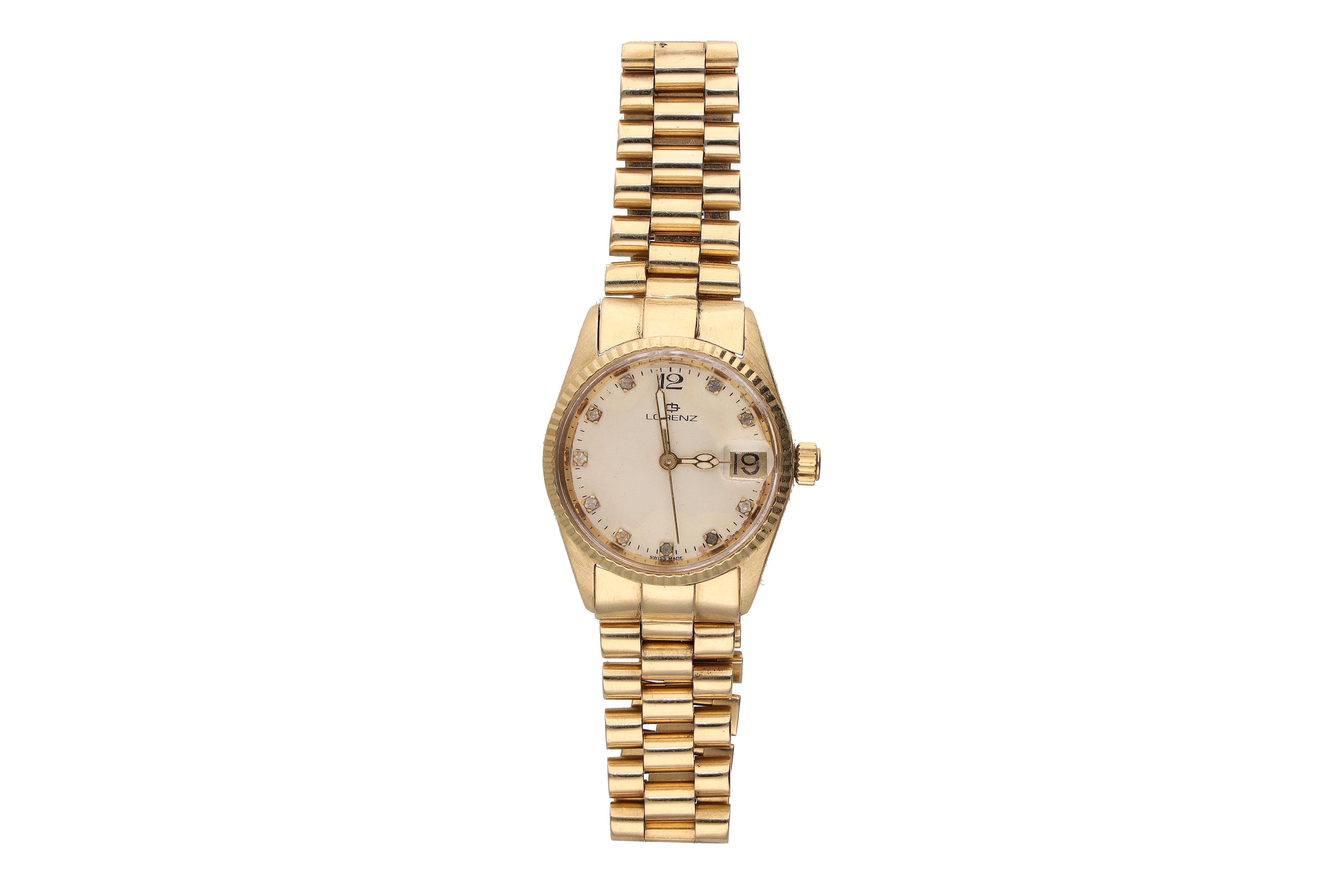 Lorenz, orologio in oro, mov automatico, cal. ETA 2671, bracciale commerciale e fibbia in oro, parti ammaccate e ossidate, gravi difetti, si consiglia assistenza tecnica, (#of47,4g) - Grammi 85,50