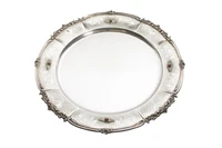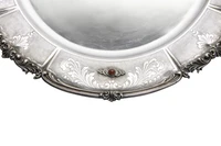 Centro con pietre, realizzati in argento 800, decorato lungo i bordi da volute e riccioli, diam 40, lievi difetti - Grammi 1.127,90