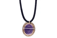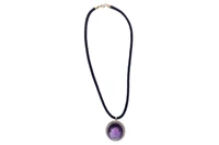 Spilla/ciondolo con ametista e diamanti, realizzata in oro giallo e bianco 750, ametista taglio composito di forma ovale, diamanti taglio huit-huit ct 0,80 totali circa, colore I-K, purezza VS-SI, collana intessuto con parte in oro giallo 750 lunghezza 46 cm, difetti - Grammi 38,50