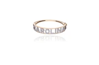 Bracciale con diamanti realizzato in oro giallo 750, diamanti taglio brillante ct 1,6 totali circa, colore I-K, purezza VS-SI, 2 mancanti, personalizzato con scritta "Carolina", dimensioni 6 x 5 cm, d - Grammi 26,30