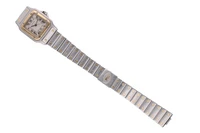 Cartier Santos, orologio in acciaio e oro , ref. 187901, movimento quarzo, cal., bracciale rotto, corona danneggiata, dimensioni 33 mm, vetro scheggiato graffiato, gravi difetti, non funzionante, si raccomanda assistenza tecnica - Grammi 81,90