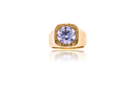Anello con diamante sintetico, in oro 585, diamante sintetico taglio vecchio ct 4,1 circa, imperfezioni, misura 17 - Grammi 19,00