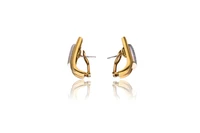 Paio di orecchini con diamanti in oro bicolore 750, diamanti taglio brillante ct 0,16 totali circa, colore H-J, purezza VS-SI, lievi imperfezioni, lunghezza 2 cm - Grammi 12,30