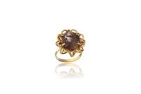 Anello con quarzo in oro 750, quarzo fumè ovale taglio sfaccettato, lievi imperfezioni, misura 14 - Grammi 6,00