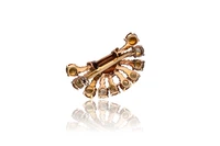 Spilla con quarzi, in oro 750, quarzi citrini rotondi sfaccettati, lievi imperfezioni, dimensioni 3,5 x 2 cm - Grammi 11,50