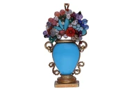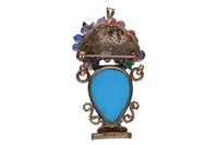 Spilla/ciondolo con turchese trattato e pietre, realizzato in oro giallo 750, difetti - Grammi 24,90