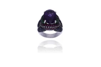 Anello con ametista, diamanti e pietre, realizzato in oro bianco 750, ametista taglio composito di forma ovale, diamanti taglio brillante, ct 0,30 totali circa, colore I-K, purezza SI-P, misura 17, imperfezioni - Grammi 18,80