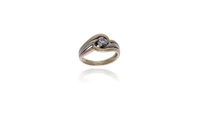 Anello con diamante, realizzato in oro bicolore 750, diamante taglio brillante, ct 0,10 circa, misura 8,5, difetti al gambo, imperfezioni - Grammi 5,60