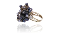Anello con perle coltivate realizzato in oro bicolore 750, perle coltivate 4-4,5 mm, misura 16, imperfezioni - Grammi 16,10
