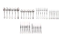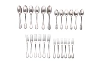 Clementi 1 BO, servizio di posate in argento 800 composto da 6 cucchiai, 6 cucchiaini, 6 forchette, 6 forchettine, g 1595 - 6 coltelli, 6 coltellini, in metallo con manico in argento e altro materiale 1045 g , parti ossidate, lievi imperfezioni - Grammi 1.595,00