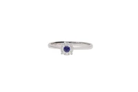Anello con diamanti e zaffiro, realizzato in oro bianco 750, diamanti taglio brillante ct. 0,08 peso inciso, colore H-J, purezza VVS-VS, imperfezioni, misura 12,5 - Grammi 1,60
