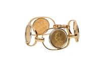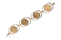 Bracciale realizzato in oro giallo 750 con quattro sterline inglesi in oro 916, imperfezioni, lievi ammaccature, lunghezza cm 17,5 - Grammi 58,20