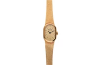 Wonder Watch, orologio in oro, movimento manuale, calibro A. Schild 1977-2, vetro platica, quadrante dorato, bracciale integrato in oro, dimensioni 22x14 mm, imperfezioni, non funzionante, si raccomanda assistenza tecnica - Grammi 32,30