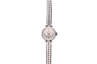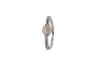 Ortin, orologio in oro, movimento manuale, calibro A. Schild 1977, vetro platica, quadrante grigio, bracciale integrato in oro con quattro piccoli diamanti taglio huit huit, diametro 16 mm, imperfezioni, non funzionante, si raccomanda assistenza tecnica - Grammi 25,30