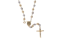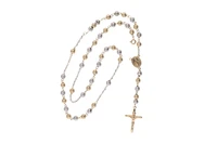 Rosario con grani diamantati, realizzato in oro giallo e bianco 750, imperfezioni, lunghezza cm 57 - Grammi 10,90