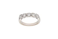Damiani, veretta con cinque diamanti, realizzata in oro bianco 750, diamanti taglio brillante ovale ct 1 ca, colore H-J, purezza VVS-VS, graffi, misura 20 - Grammi 6,90