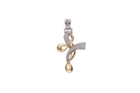 Croce a guisa di nastro in oro bicolore 750, con lavorazione diamantata, imperfezioni dim cm 5x2,6 - Grammi 9,70