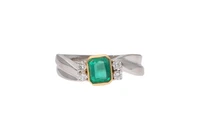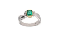 Recarlo, anello con diamanti e smeraldo, realizzato in oro bianco 750, smeraldo ct 0,50 ca e diamanti taglio brillante ct 0,16 ca tot, colore H-J, purezza VVS-VS, imperfezioni, misura 18 - Grammi 6,80