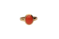 Anello con piccolo bottone ovale in corallo, realizzato in oro giallo 750, imperfezioni, dimensioni cm 1,2x1, misura 15 - Grammi 2,90