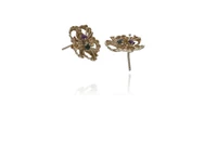 Paio di orecchini con quarzi, realizzati in oro giallo 750, chiusura con perni e fermi, un fermo mancante, imperfezioni - Grammi 6,70