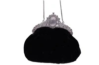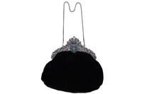 Borsetta con parte in argento pietre e tessuto, catena in metallo, difetti - Grammi 203,50
