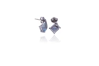 Paio di orecchini con diamanti e acquemarine, realizzati in oro bianco 750, diamanti taglio brillante ct 0,10 totali circa, affiancati da acquemarine taglio composito forma quadrata, chiusura con perno e fermo, lievi difetti - Grammi 4,60