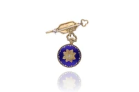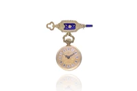 Spilla con orologio a ciondolo con smalti e diamante, realizzati in oro giallo 750, carica manuale, smalti, diamante taglio huit-huit, difetti - Grammi 17,30