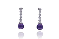 Paio di orecchini con ametiste e pietre, in oro bianco 750, ametiste cabochon a goccia, chiusura con perni e fermi, parti incollate, imperfezioni - Grammi 9,60