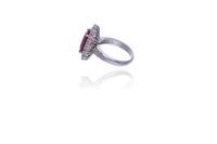 Anello con pietra e diamanti realizzato in oro bianco 750, diamanti taglio brillante ct 1,1 totali circa, colore I-K purezza VS-SI, misura 14, diamante mancante, imperfezioni - Grammi 8,50