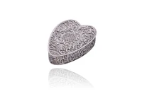 Scatola realizzata in argento 925, punzone anti 1969 572MI, a forma di cuore e decorata con volute e riccioli, dimensioni h cm 4 x 12,5 x 9,5, parte ammaccata, difetti - Grammi 132,50