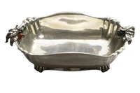 Centro anni '30-'40, con agata e malachite, realizzato in argento 800, punzone con fascio littorio, h 11 x 39 x 25, lievi difetti - Grammi 1.199,30
